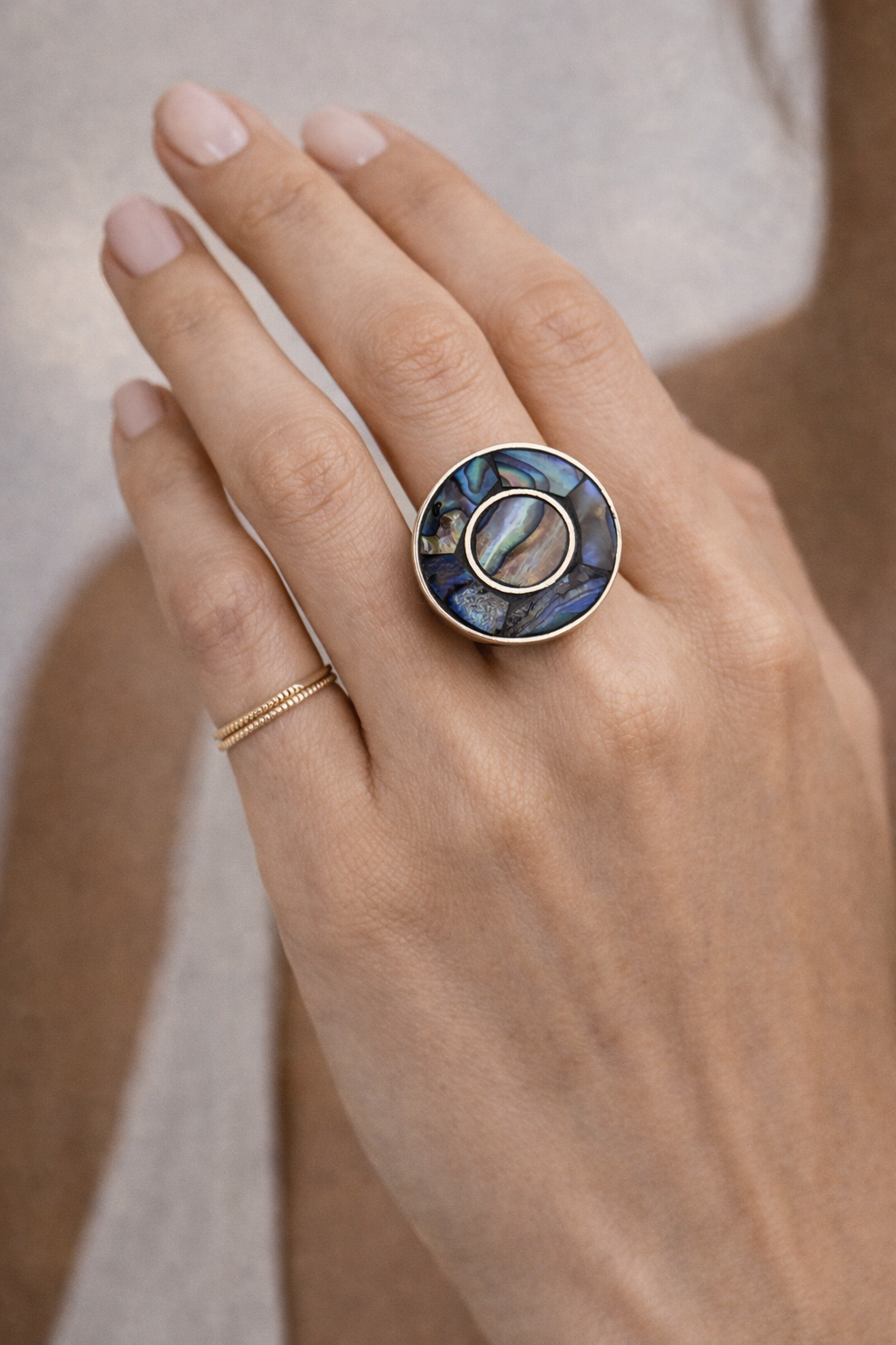 Experience the timeless beauty of our handmade abalone shell ring, designed to add a touch of elegance to any look while maintaining comfort and durability. No machine-made shortcuts; every piece is thoughtfully created by skilled artisans, showcasing the unique iridescent shine of abalone shell.