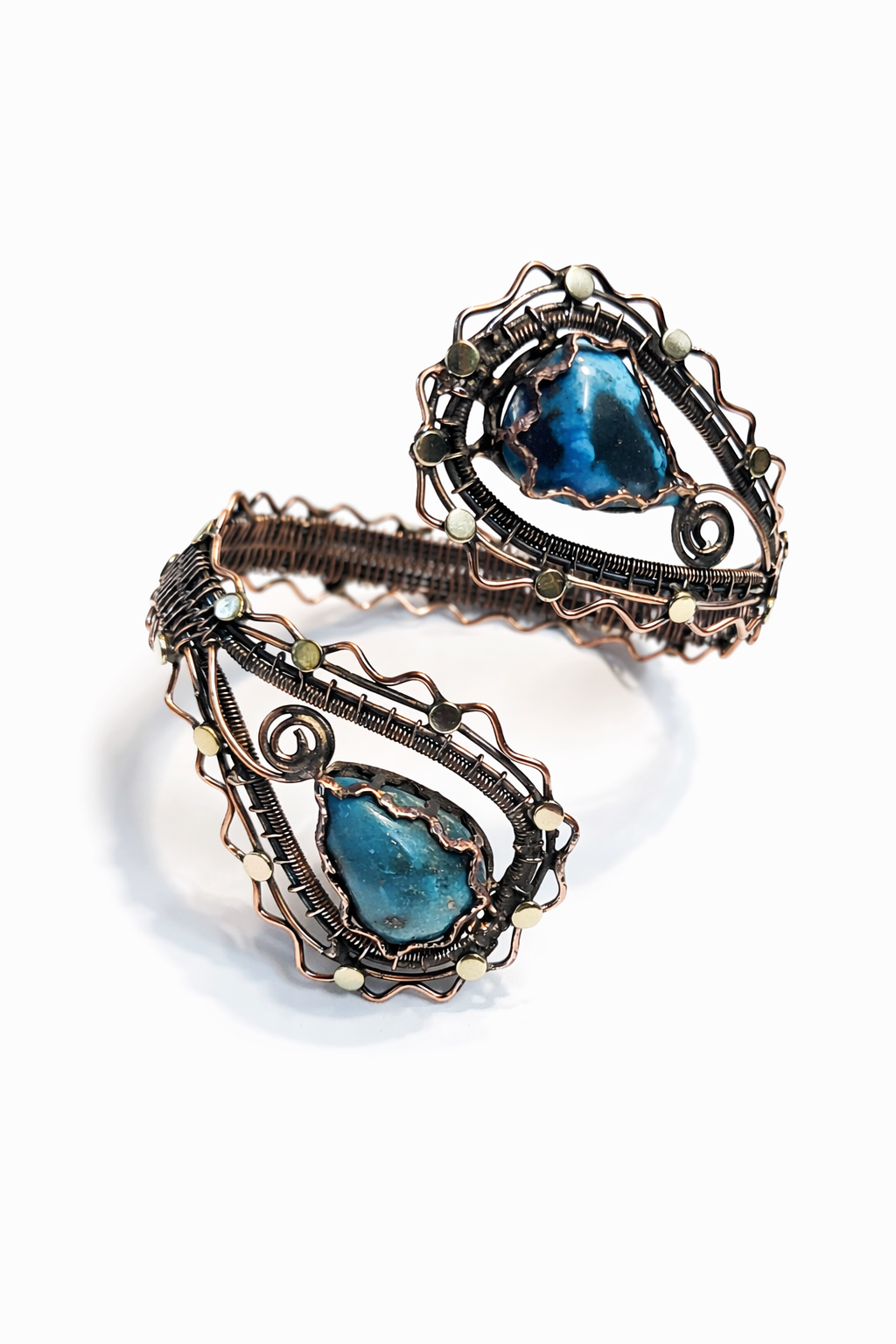 Discover the beauty of our Handmade Wire Wrapped Copper Bracelet featuring a striking turquoise stone centerpiece. Carefully crafted with attention to detail, this bracelet showcases the perfect harmony of artistry and elegance.
