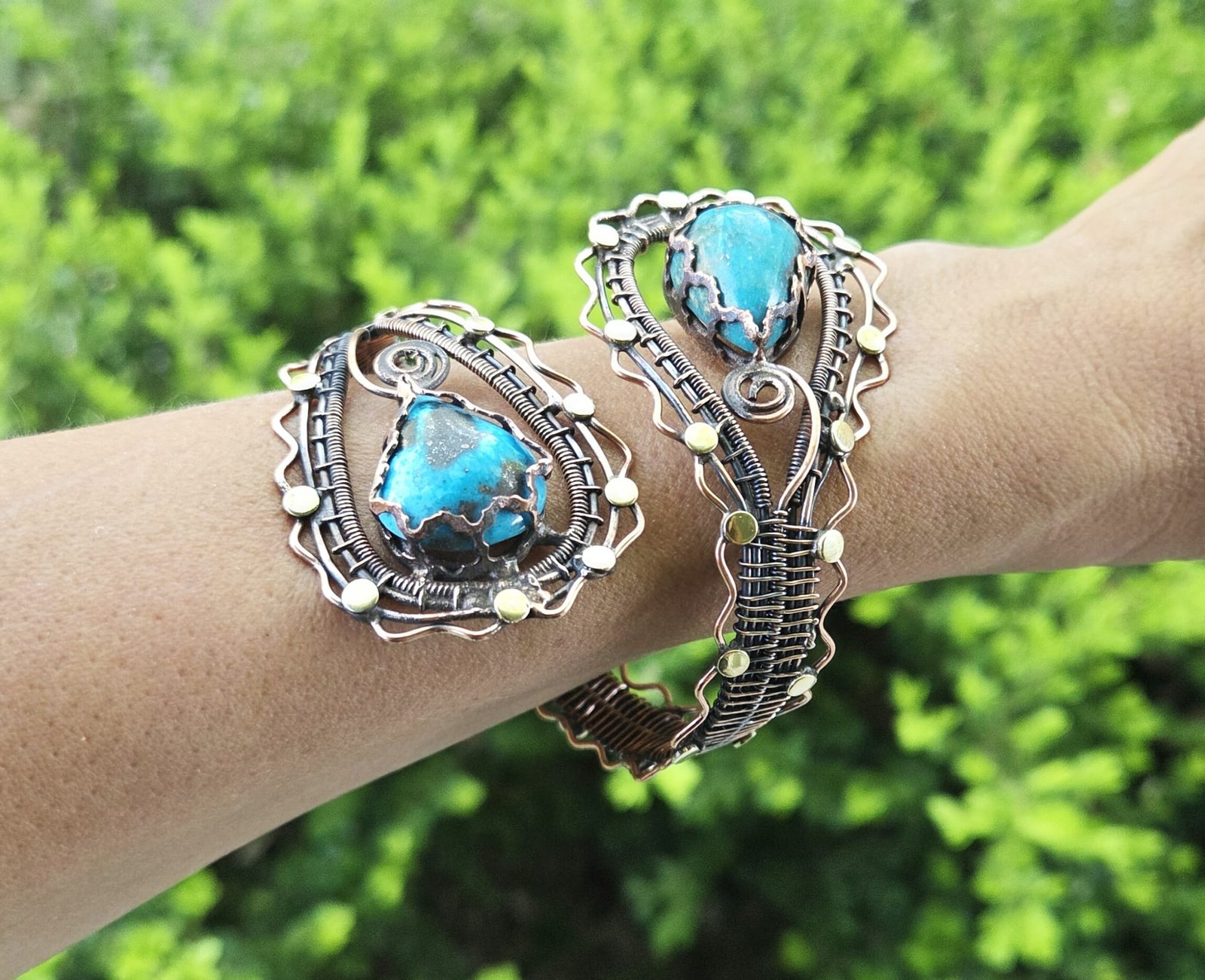 Made from 100% authentic turquoise stone and premium copper wire, this bracelet offers durability without compromising on style. Plus, it’s entirely nickel-free, ensuring it’s suitable for sensitive skin.