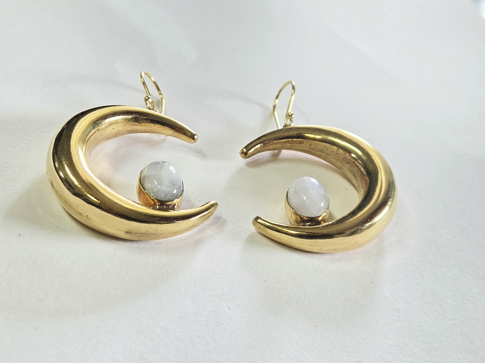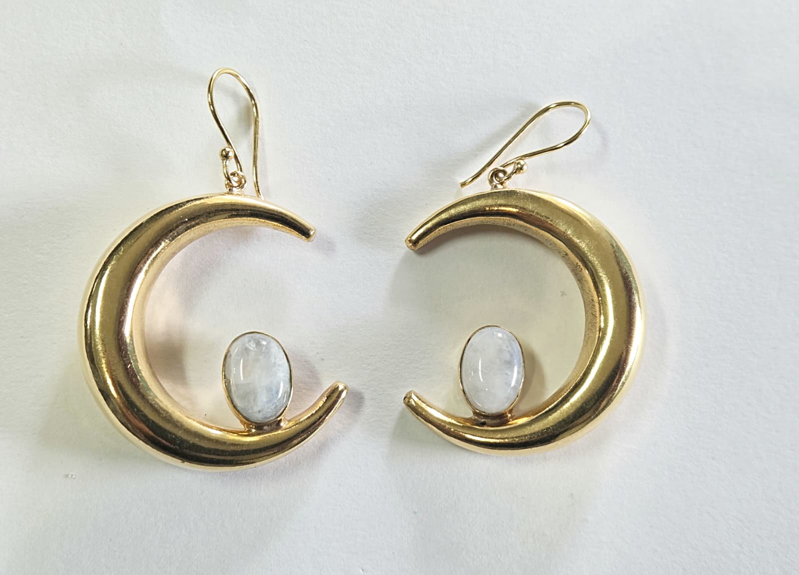 The captivating half-moon design symbolizes harmony and balance, while the moonstone adds an ethereal glow that makes each piece stand out. Thoughtfully handcrafted, these earrings make a perfect gift for loved ones or a special treat for yourself. Elevate your style with these stunning earrings that radiate elegance and craftsmanship.